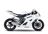 | ✚✚✚ Yoshimura R-77 Full Exhaust For Yamaha Trapezoidal shape Maximized carbon or stainless steel cone end cap 3 muffler options stainless, titanium, carbon fiber Low-volume insert included Complete style with 20-guage 304L polished stainless steel tapered mid-pipe and header, and spring mounted spigot and flanges (most models) Slip-On style with 20-gauge 304L polished stainless steel tapered mid-pipe easily attaches to the O.E.M header pipe