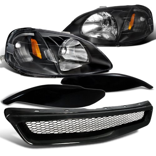 Honda Civic Headlights, Grille, Eyebrow Black .